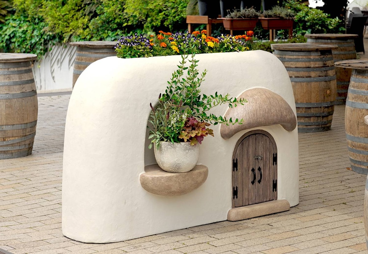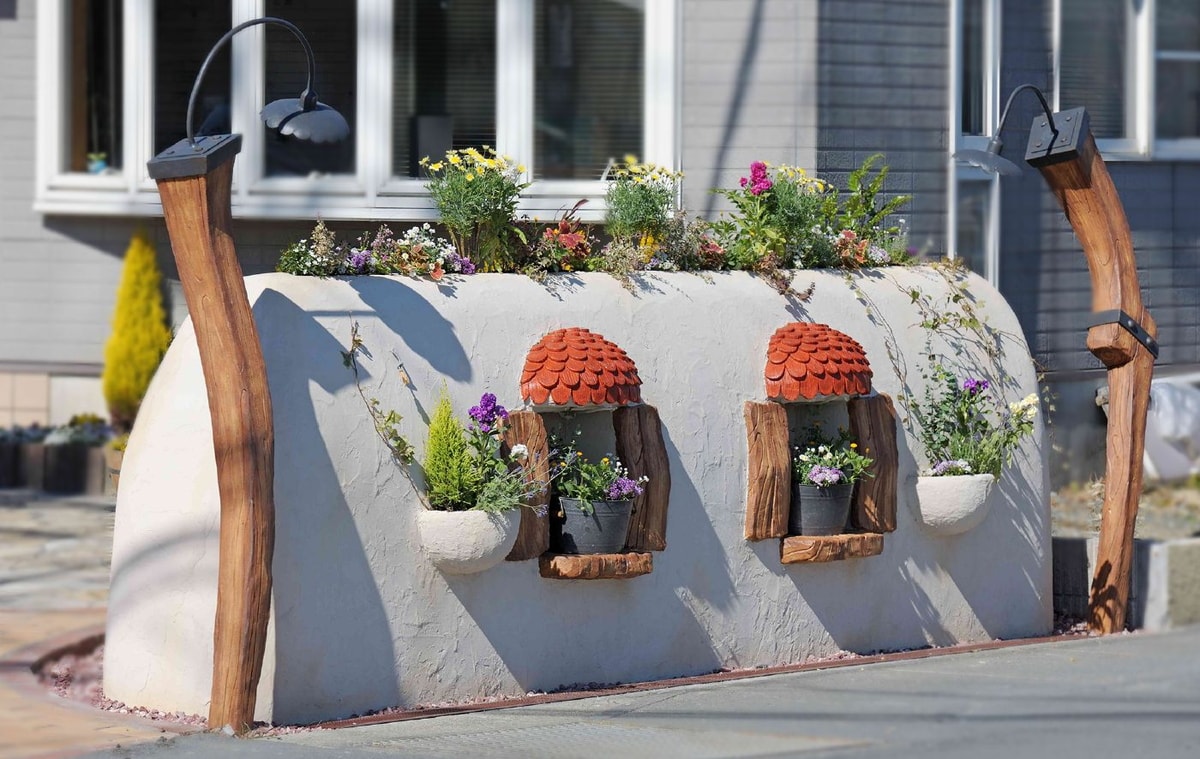 プランティングウォールは、ファンタジー溢れるエクステリアです。上部、壁面にプランター機能を備え、植物を育てて花や緑を楽しむことができます。